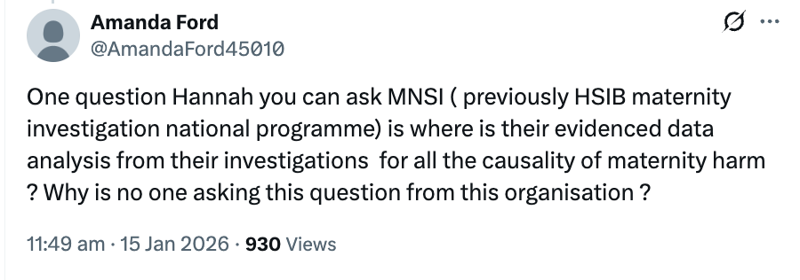 These are previous posts relevant to HSIB’s serious failures of maternity investigation, NHS England’s cover ups and the arising investigations into these matters and Amanda Ford’s case, and a related item about previous HSIB leadership by Keith Conradi who was parachuted into the NHS from the Air Accidents Investigation Branch (AAIB):