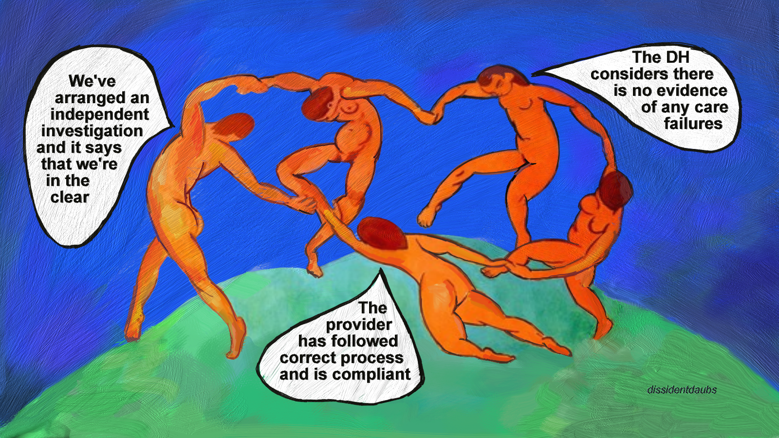 And what a cosy example of the “circular assurance” described by Bill Kirkup in his report of patient safety failings at Morecambe Bay. [6]