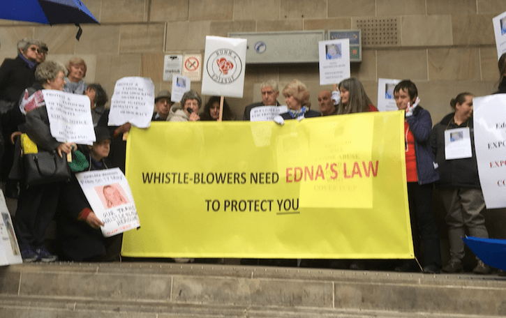 The principles of Edna’s Law are that whistleblowers must be proactively protected by the State, that disclosures must be investigated and that those who cover up and harm whistleblowers must be properly held to account.