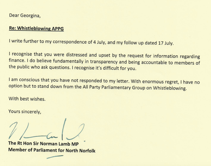 Especially in the context that an APPG member resigned in protest at WhistleblowersUK and the APPG’s unaccountability.
