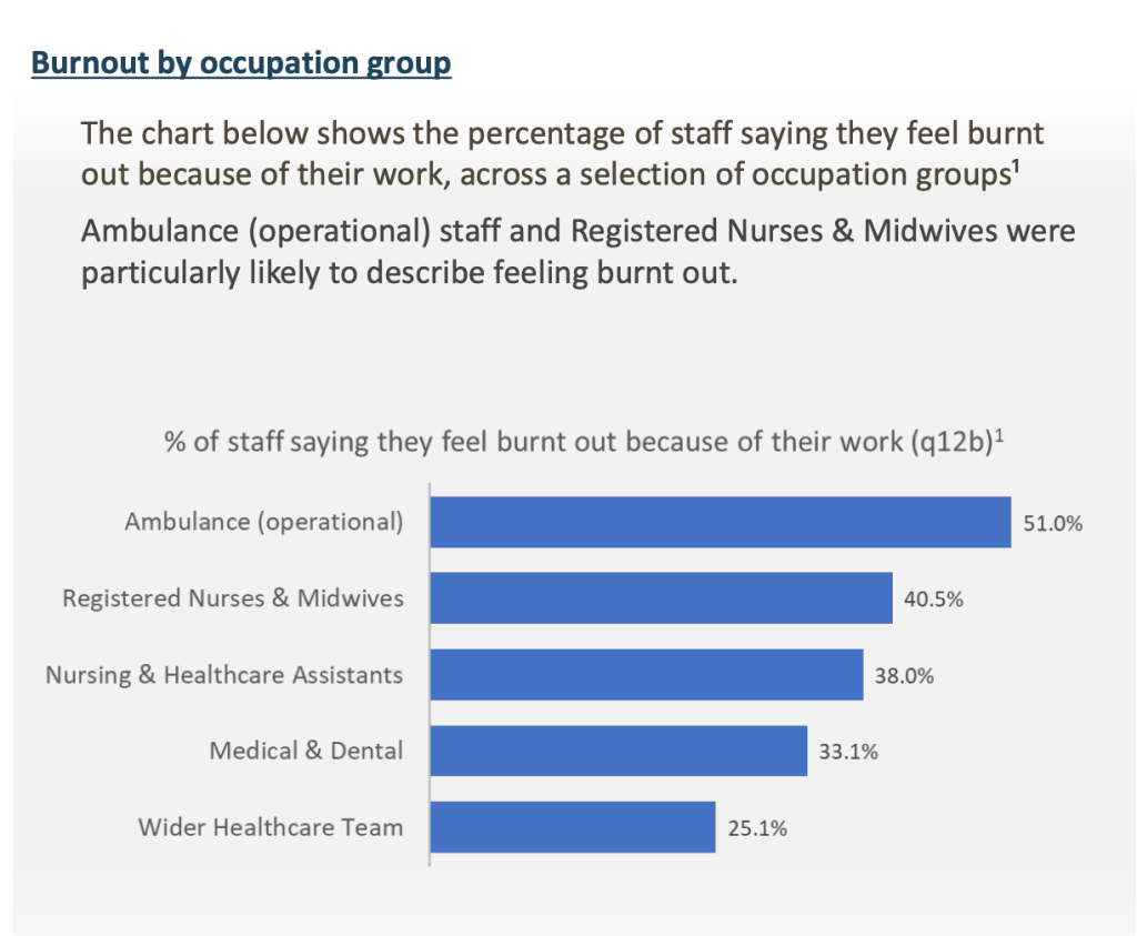 The latest NHS staff survey shows as usual that NHS ambulance trusts have the highest levels of bullying, and that ambulance staff report the greatest burnout:
