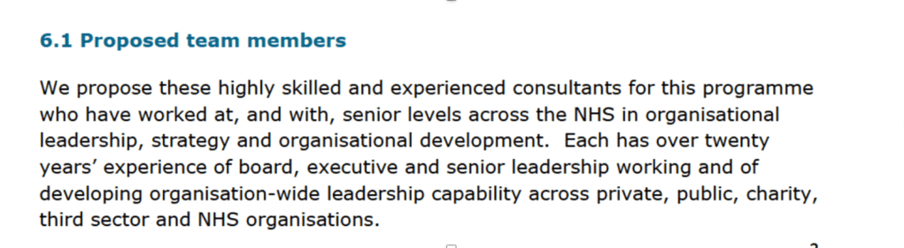Bizarrely, the five authors’ identities were redacted. They were described as exceptionally senior for the purposes of the King’s Fund’s sales pitch to NHSE/I, but they were purportedly not considered senior enough for the purposes of overriding section 40 FOIA (personal data). Hey ho.