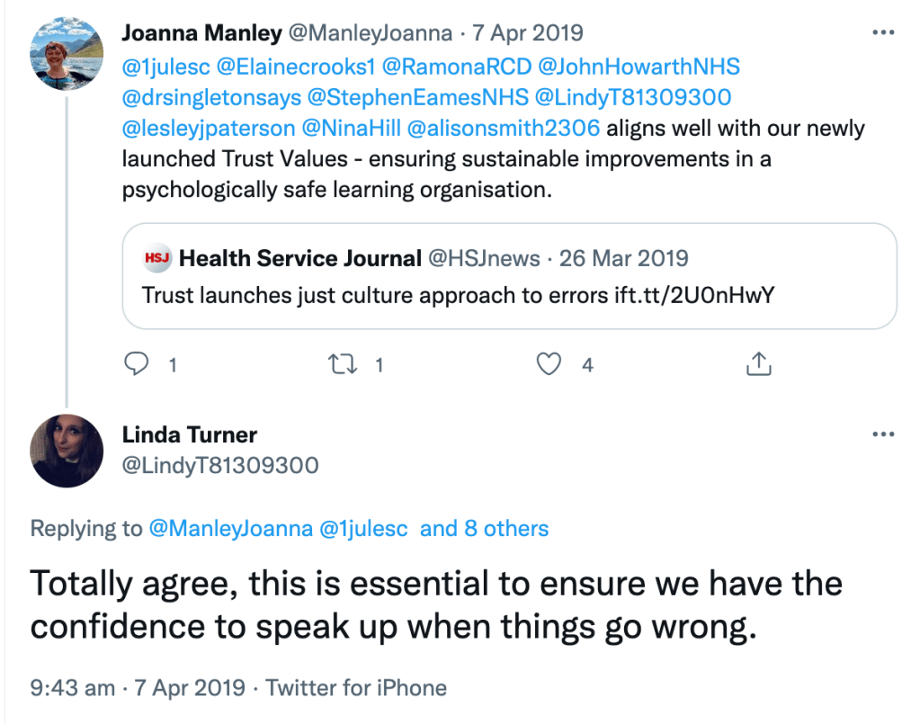 This is the trust Freedom To Speak Up Ambassador, who gave hearsay evidence against Jane Archibald, discussing the importance of giving staff confidence to speak up when things go wrong: