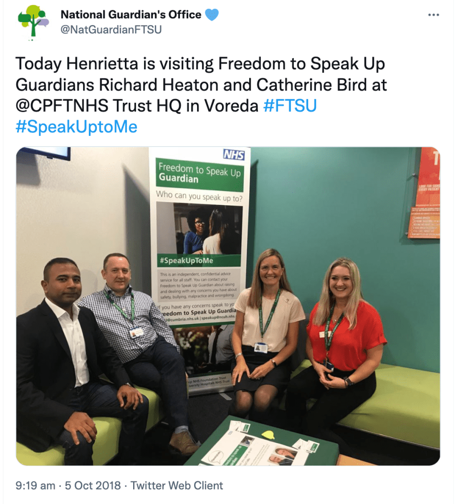 Whilst Jane Archibald was suffering whistleblower reprisal, the National Guardian’s Office was helping to legitimise and publicise the trust’s whistleblowing governance: