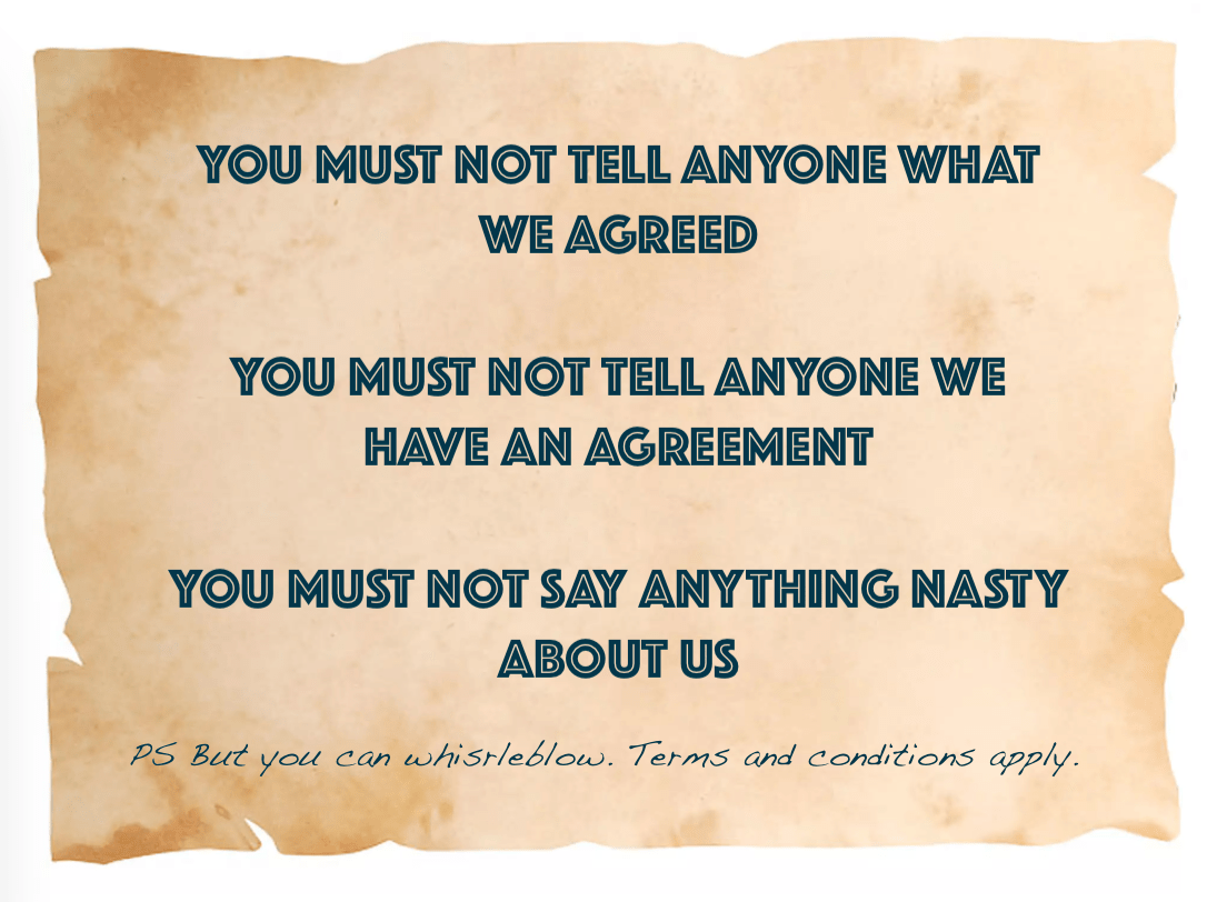 - Non-disparagement clauses which have a similar chilling effect to confidentiality clauses