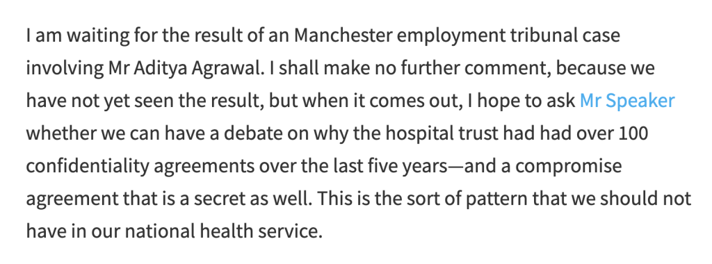 This was also despite FOI data that I extracted in 2016 showing widespread use of super-gags by some trusts, including by the trust which sacked a whistleblowing surgeon, leading to a question by Peter Bottomley MP in parliament: