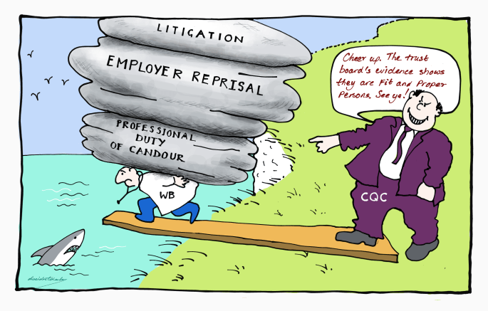 A particularly gross example of CQC conflict of interest and failure on FPPR was when it passed its notorious former Chair Jo Williams as a Fit and Proper Person, removing obstacles to her recycling back into the NHS fold: