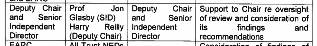 In addition, the trust claimed to me in its FOI response that there was no known conflict of interest in its FPPR process on David Rosser. However, the FOI response revealed that one of the trust’s non executive directors, Jon Glasby a social worker by background, acted as a support to the former trust Chair Jacqui Smith in the Rosser FPPR process: