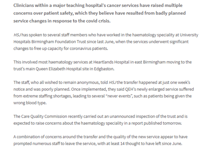 University Hospitals Birmingham NHS Foundation Trust also made the headlines on 5 June 2022 because of reportedly poor treatment of doctors in training in obstetrics and gynaecology, requiring regulatory intervention: