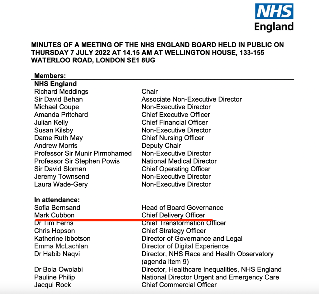 NHS England has to date refused to do anything about Cubbon, now its Chief Delivery Officer.