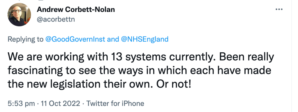 “GGI is currently working with ICSs to review their governance arrangements, and, through our networks and events, we are developing thinking on how ICSs should approach their first end of year review.”