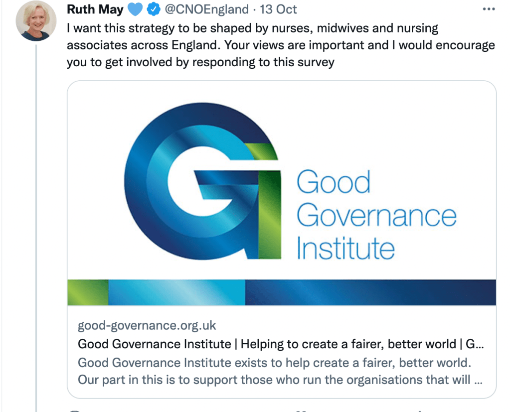 The GGI tweeted this blog on 11 October 2022, tagging in NHS England (see screenshot), raising a question of whether NHS England is a partner in this work and has commissioned the GGI to undertake this project: