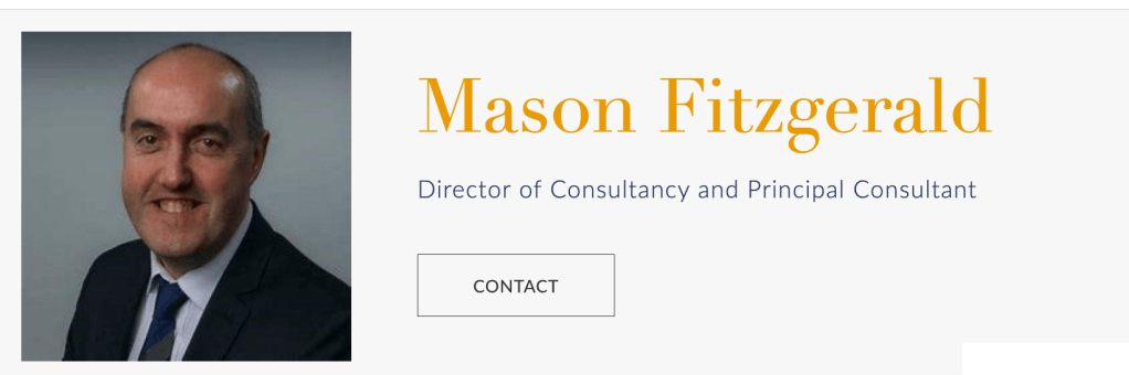 The current GGI  website profile for Mason Fitzgerald, described as a GGI ‘senior consultant’, omits to mention anything about his sacking. See attached screenshot and link: