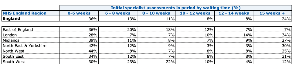 Meanwhile, injured NHS staff and other long COVID sufferers may be waiting months for assessment. The most recent NHS England data (for the period 23 September to 23 October 2022) showed that 24% of people referred waited for more than 15 weeks to be seen, with London struggling the most at 34%.