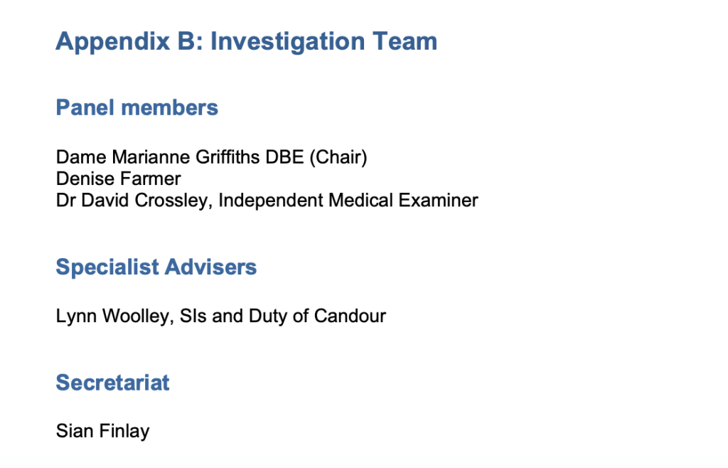 It was led by Marianne Griffiths former NHS CEO despite multiple objections from bereaved families and several whistleblowers, including those who reported she failed them. I objected over a year ago, based on concerns about governance at her former trust in Sussex where she was CEO, and received the usual stonewalling from NHS England.