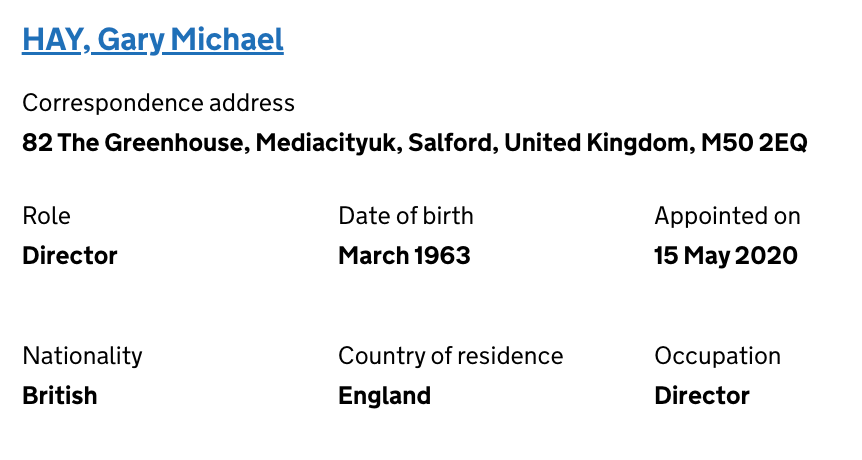 However, another similarly named company, Law2Business Limited with sole officer Gary Michael Hay of a different address was incorporated in 2020.