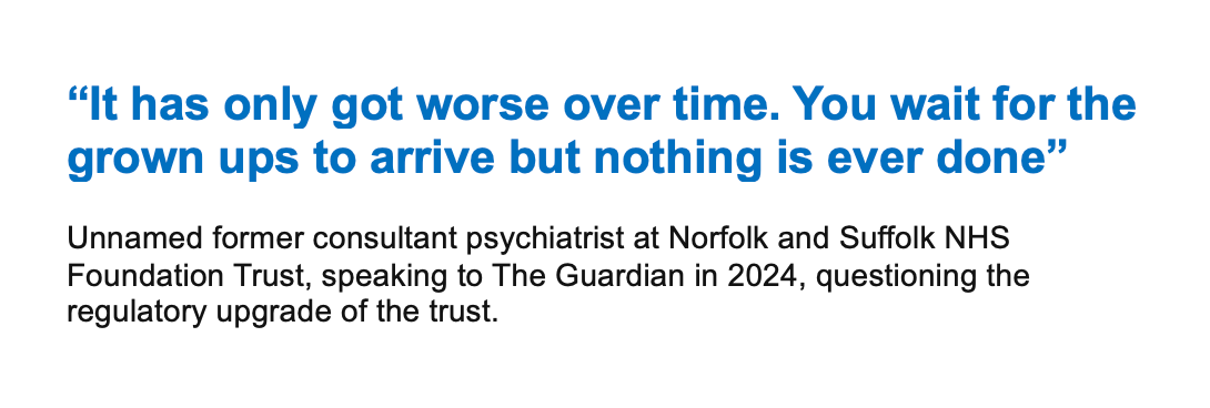 1) Waiting “for the grown ups to arrive”. Dangerous shortage of mental health beds, the government’s deflection of coroners’ warnings and normalisation of bad practice by NHS England A lengthy but indexed report with data, on the wilful blindness of politicians and NHS England to the harm caused by unsafe cuts to mental health beds.