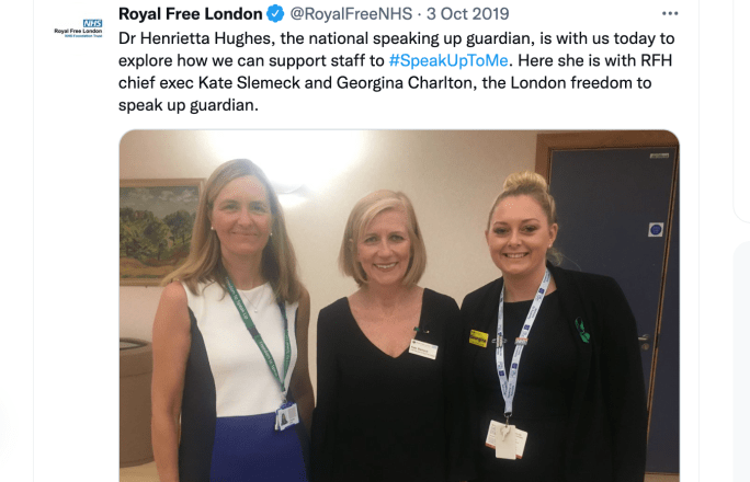 “Staff we spoke to said that they did feel able to speak up and raise concerns, and in midwifery, staff told us they had seen the Freedom to Speak Up Guardian (FTSUG) in their department. The FTSUG reported to the board yearly through an annual report and prepared a monthly report for the executive team. The FTSUG was appointed in August 2021, with an increase in hours to a full time role.