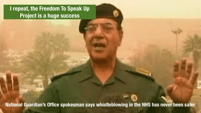 One particularly distasteful aspect of the relentless spinning is the annual October “Speak Up Month”, when the National Guardian leads intensified PR by her Office and by local trust guardians. The purpose is to give a superficial impression that speaking up is joyous, just before NHS staff complete the annual staff survey which includes questions about how they perceive the risk of speaking up in the NHS.