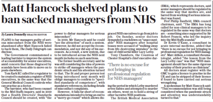Streeting has not so far answered my question to him about whether he will commit in principle to regulation for managers that is as rigorous as regulation for clinicians.