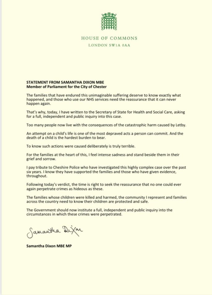 I am writing following the murders of at least seven babies by Lucy Letby, and the failings in the management at the Countess of Chester Hospital uncovered by the subsequent trial.
